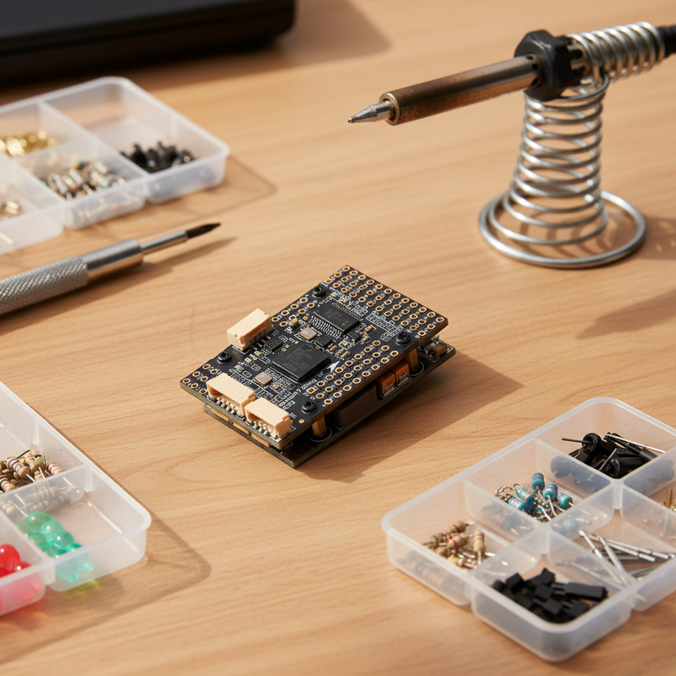 Material compuesto: Asegura durabilidad y ligereza, mejorando el rendimiento general y la longevidad del controlador de vuelo.
