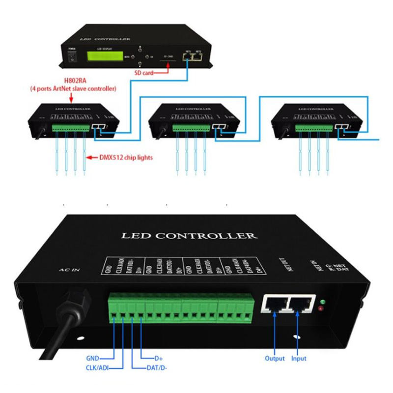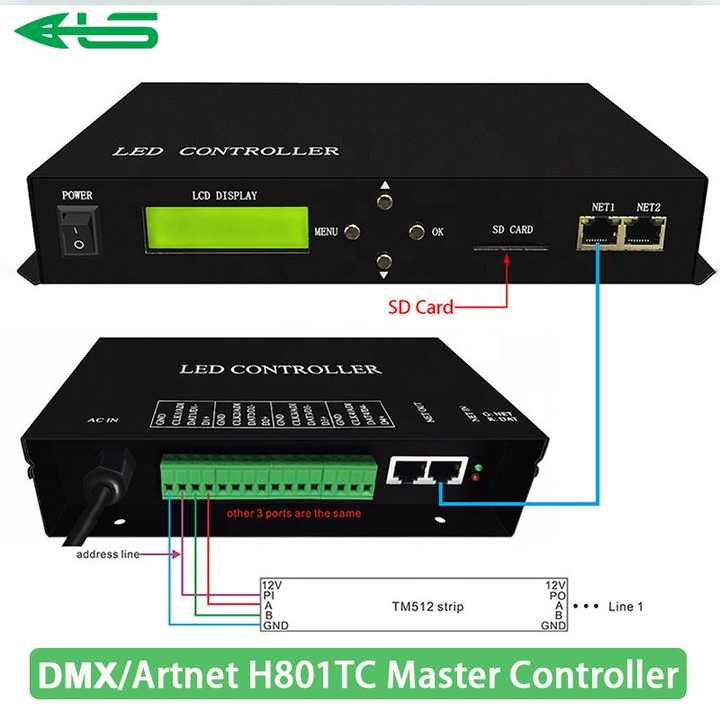 Controlador LED H801TC, Controlador de Píxeles LED, Utiliza Protocolo Ethernet, Controla 150000 Píxeles, 255 Esclavos, Compatible con Consola DMX