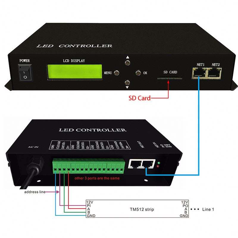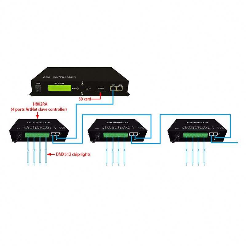 Controlador maestro LED H801TC, controlador LED de píxeles, Unidad de protocolo Ethernet, 150000 píxeles, 255 esclavos, compatible con consola DMX