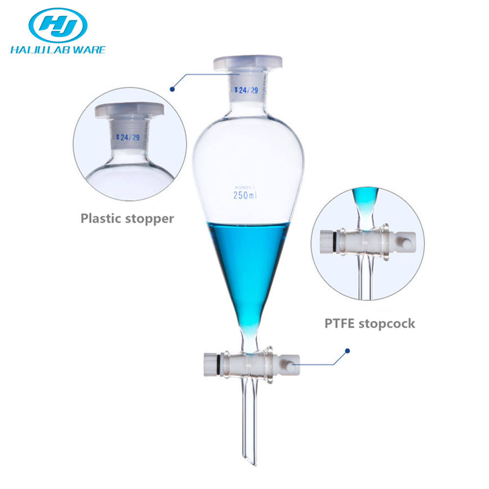 HAIJU LAB vidrio de borosilicato personalizado esférico/pera 60-5000ml embudo de separación llave de paso de PTFE resistencia a altas temperaturas para