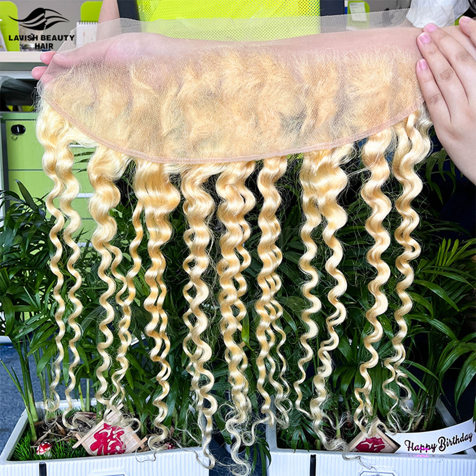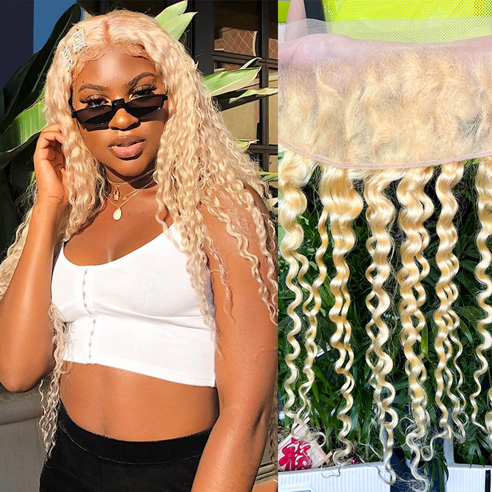 HAIR Paquetes de cabello humano de onda profunda rubia 613 con 13*4 frente de encaje brasileño disponible en 12 16 18 pulgadas de longitud