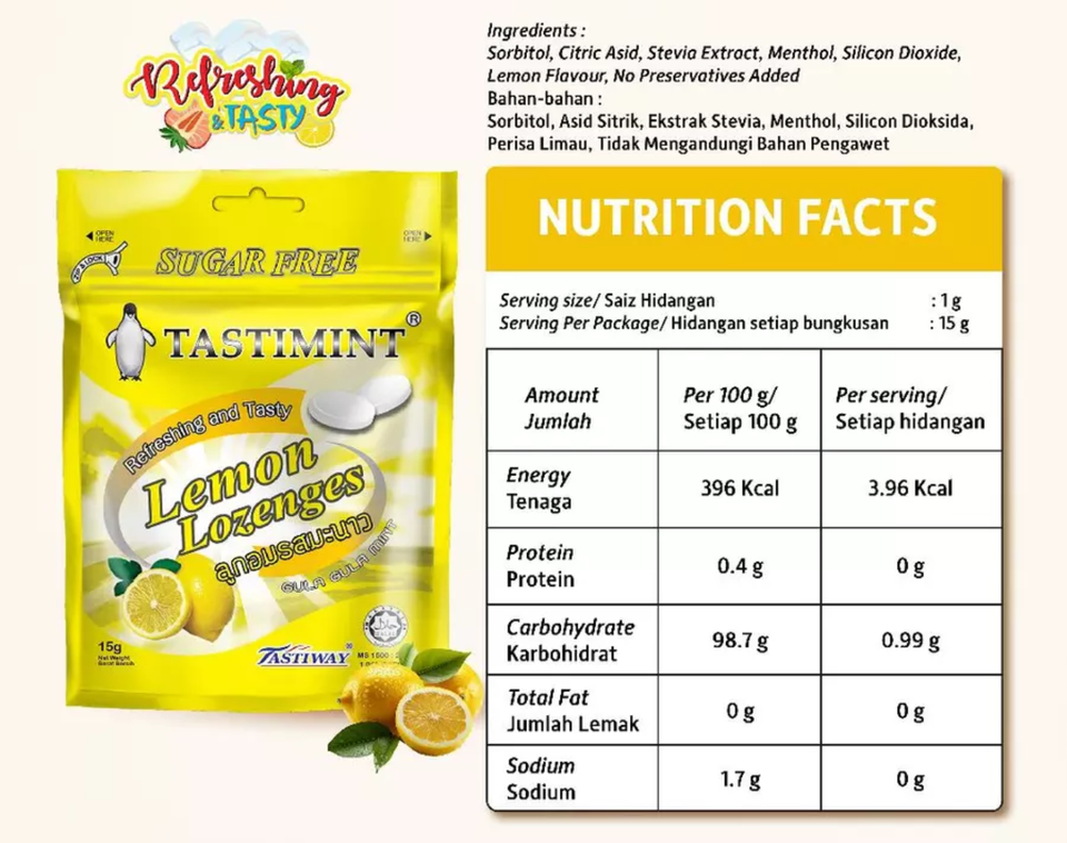 Ingredientes:Sorbitol Stevia Extracto Limón Mentol