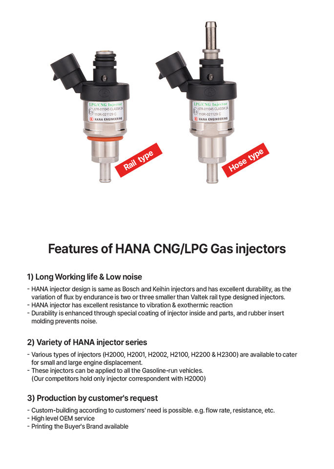 Inyectores de gas HANA H2005 LPG y CNG Inyector de riel común Hecho en Corea Estado Nuevo