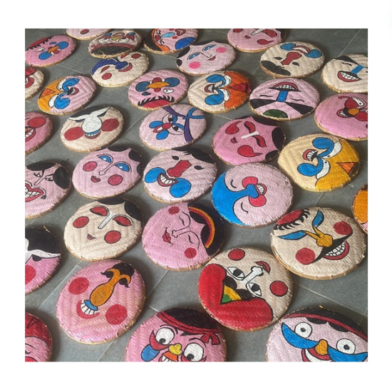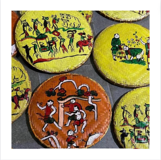 Cesta redonda plana de bambú dibujada a mano para decoraciones de eventos tradicionales al por mayor cesta tradicional de Vietnam