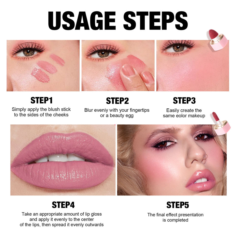 HANDAIYAN 2 en 1, Rubor Líquido y Tinte Labial de Doble Punta, 6 Colores, a Base de Agua, Larga Duración, Set de Maquillaje para Mejillas y Labios, Maquillaje Natural Diario