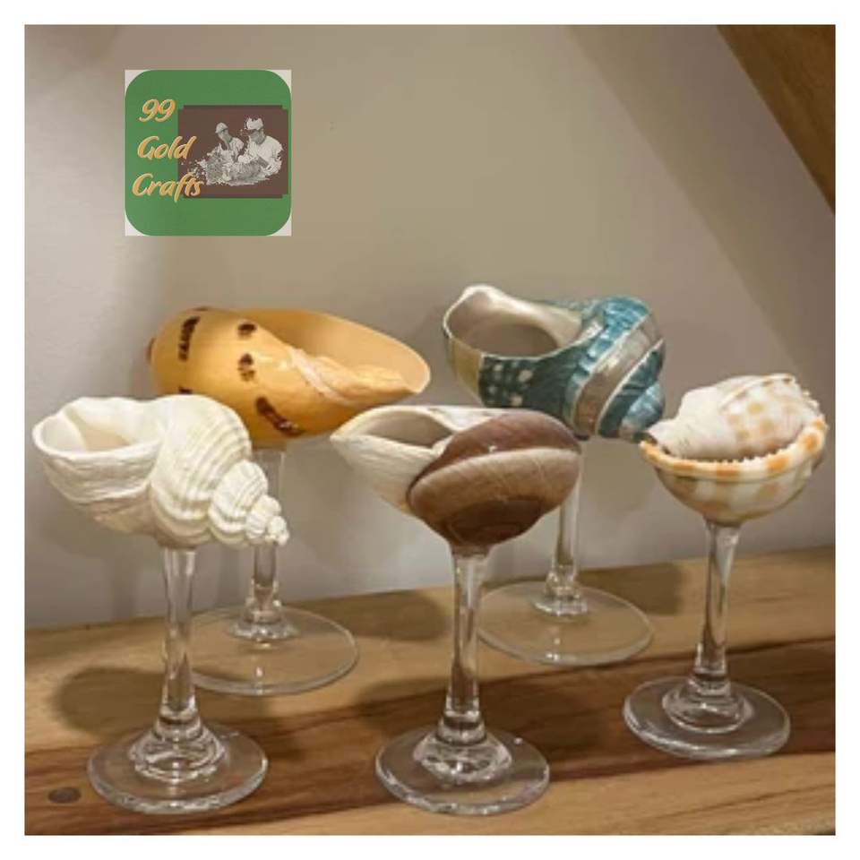 Copa de Vino Artesanal de Concha Marina, Copa de Martini Única para Bodas, Fiestas y Decoración Premium