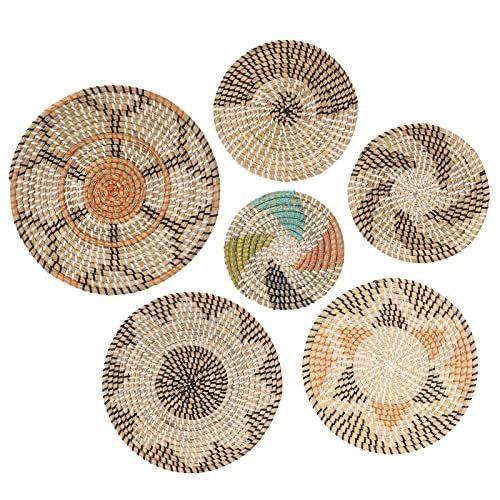 CESTA DE ARTESANÍA: DECORACIÓN DE PARED COLGANTE DE HIERBA MARINA, BAMBÚ DE RATÁN ECOLÓGICO BOHO,.
