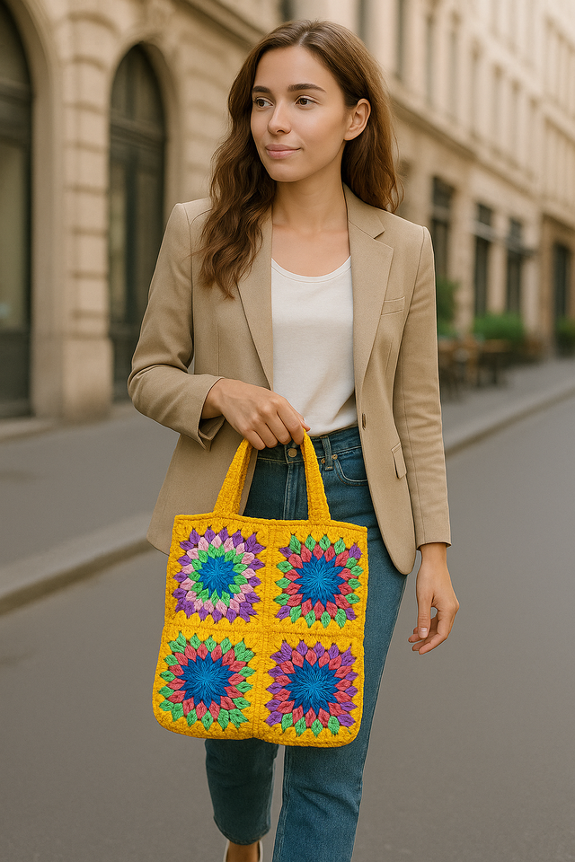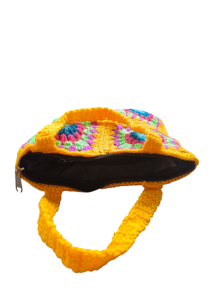 BOLSO DE GANCHO HECHO A MANO CON CUADRADOS DE GRANMA