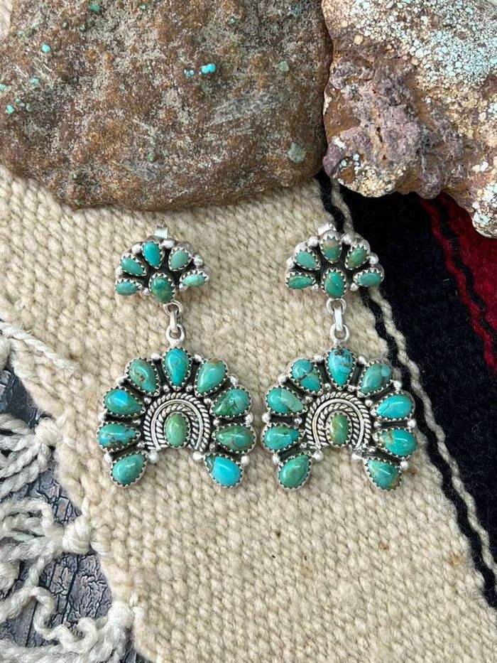 Pendientes Colgantes de Plata de Ley Chapados en Oro Rosa Hechos a Mano con Turquesa Kingman - Modernos y Unisex