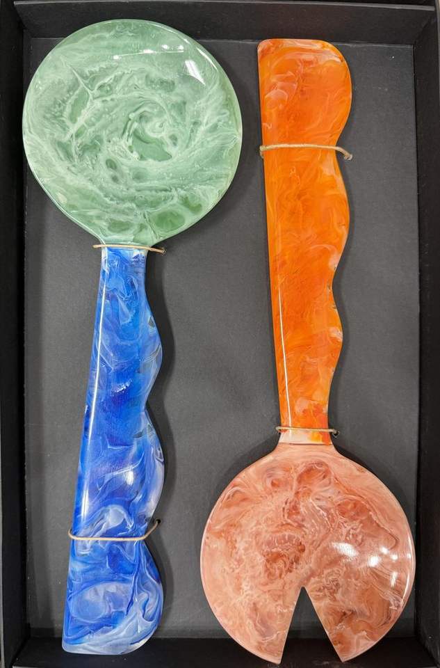 Juego de servidores de ensalada de Resina 100% HECHO A MANO VIBRANTE para uso doméstico y hotelero incluye cuchara de helado para servir ensalada