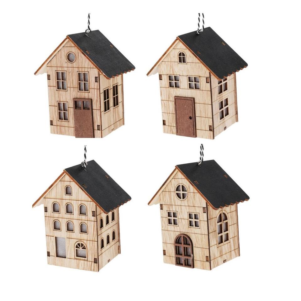 Decoración Colgante de Madera con LED, 8 cm de Alto, Surtido