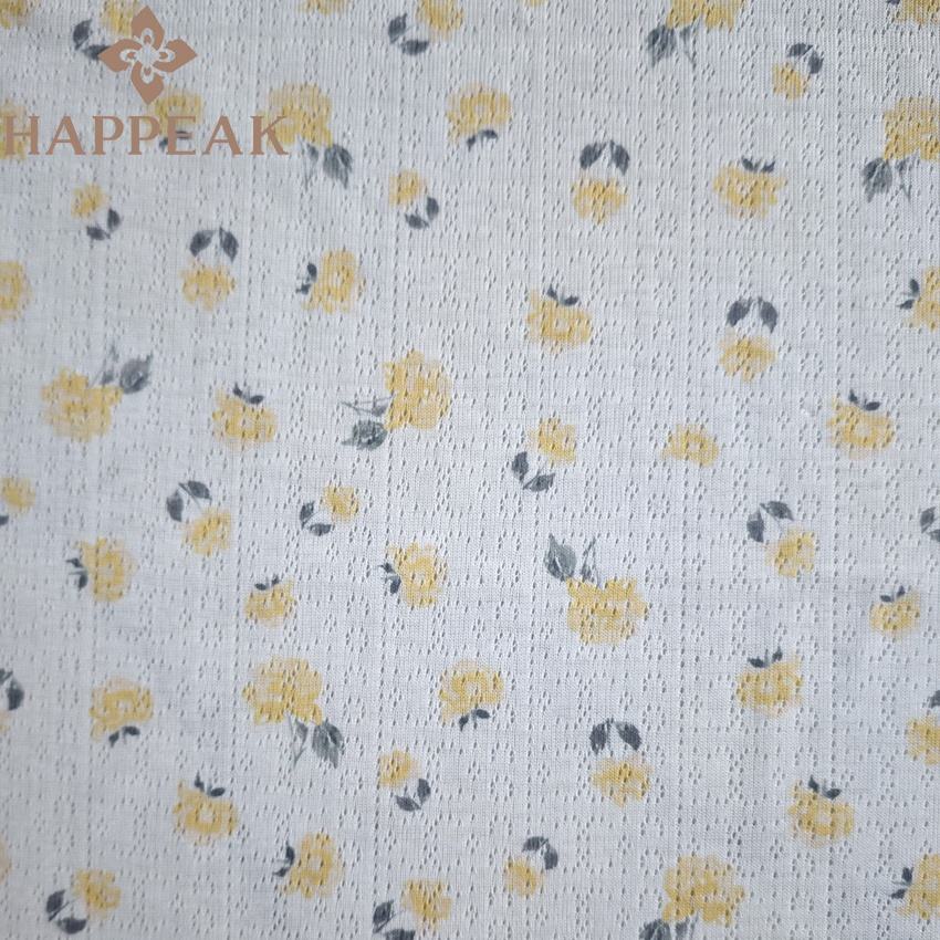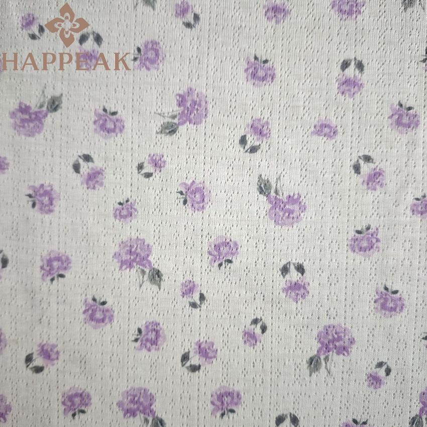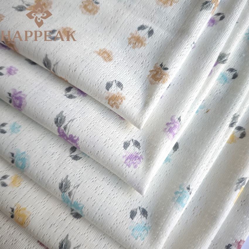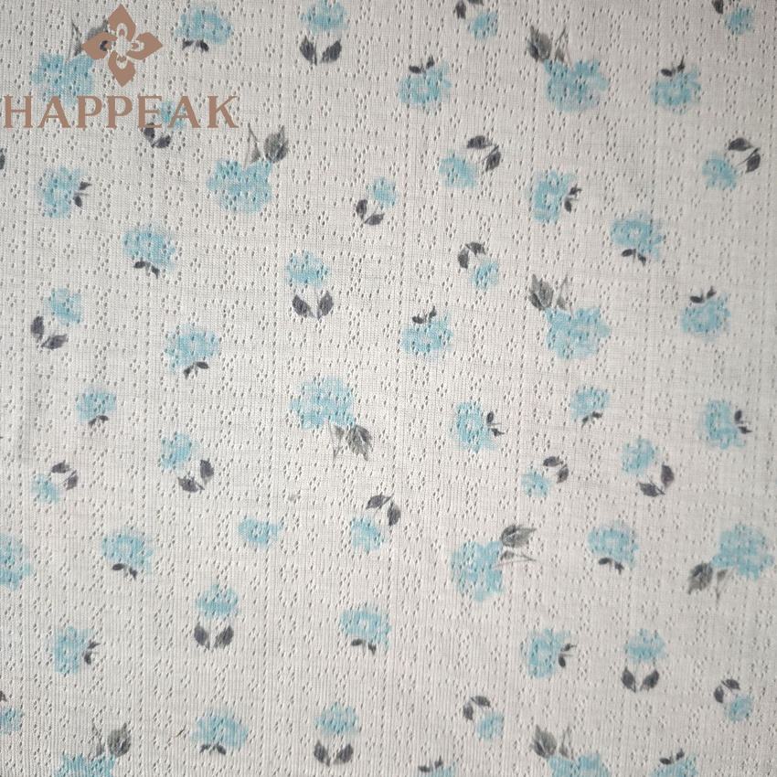 HAPPEAK Tejido de punto acanalado con estampado de flores personalizado Jacquard Pointelle Tejido de punto para proyectos de diseño de ropa