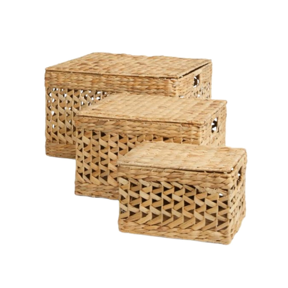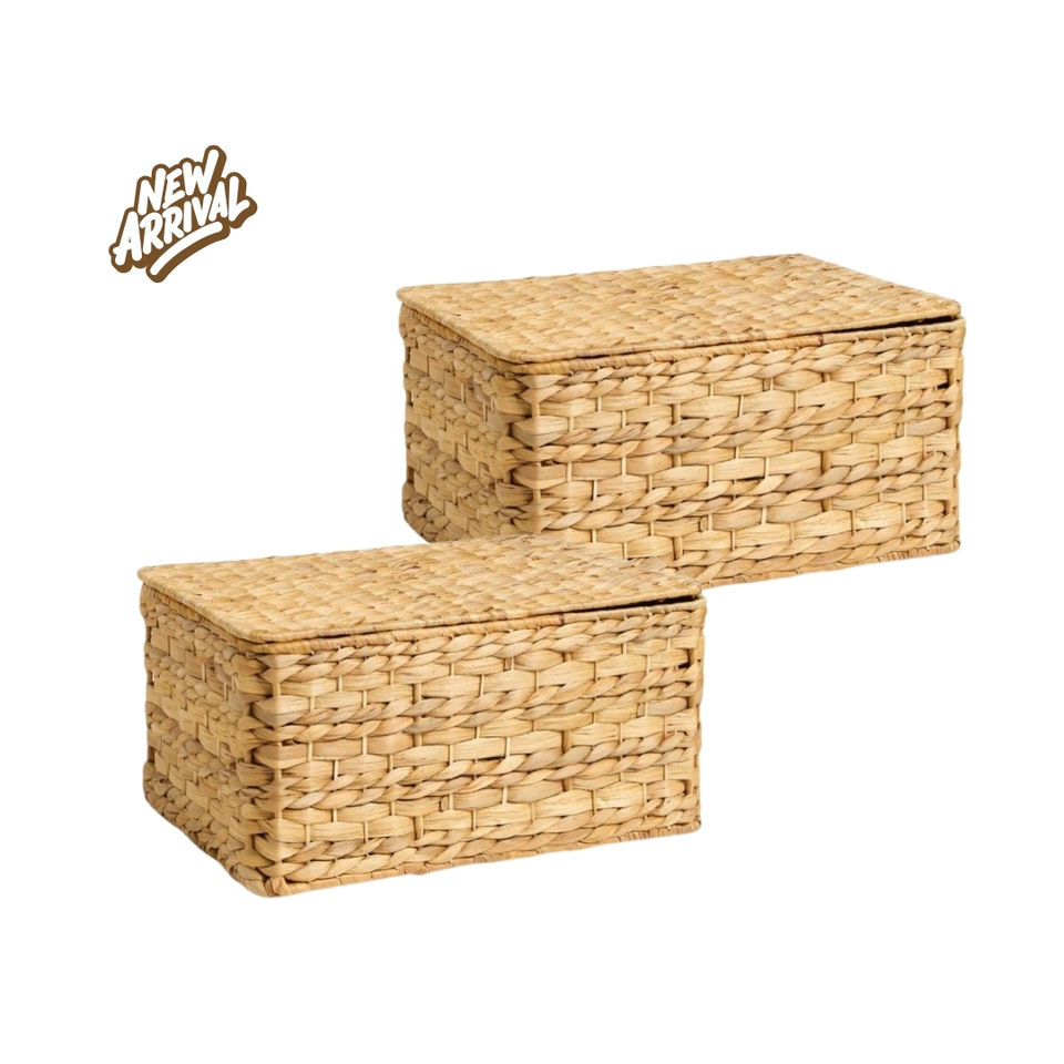 HAPROSIMEX SAIGON Cesta de jacinto de agua rectangular tejida duradera hecha a mano Color Natural de Vietnam