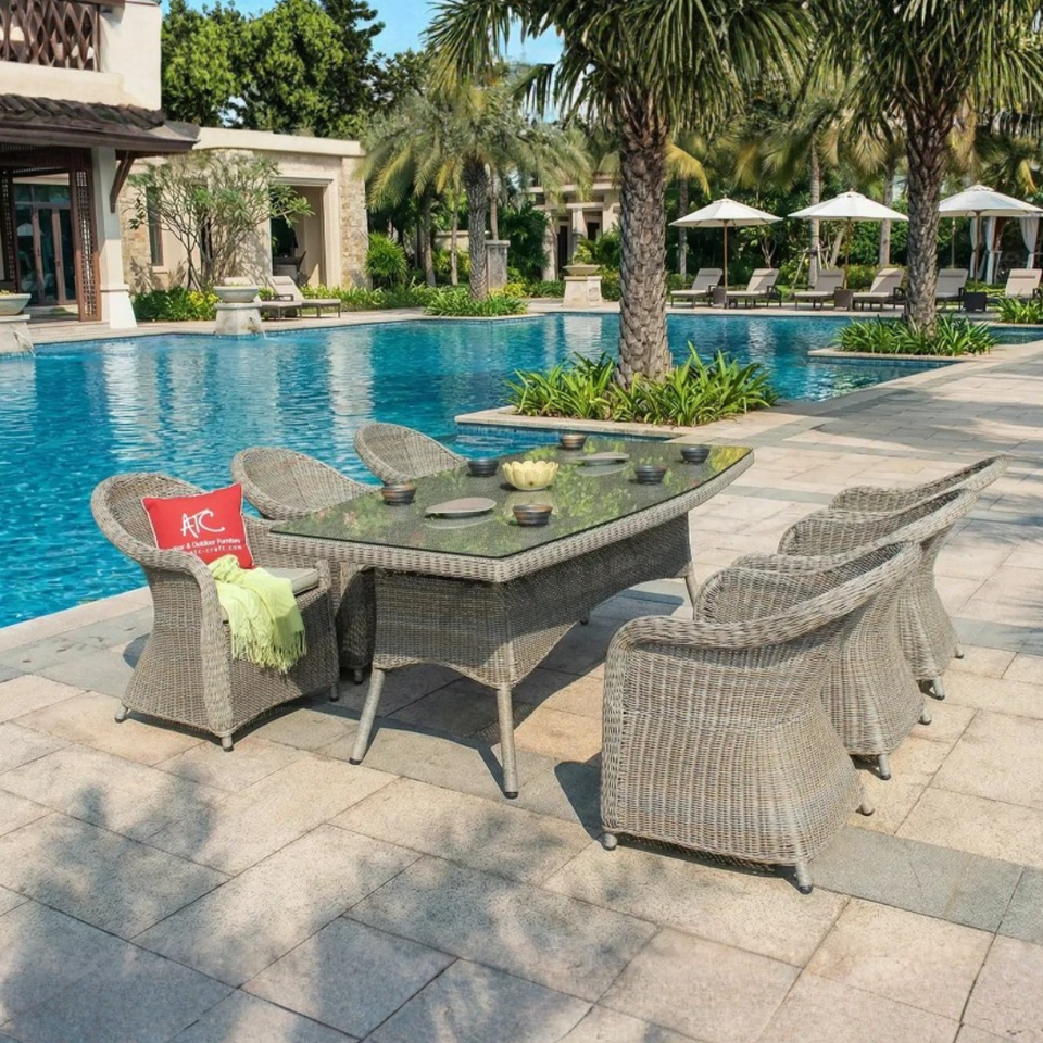 Conjunto de Mesa y Sillas para Exterior HARA, Muebles de Comedor de Mimbre con Cubierta de Vidrio
