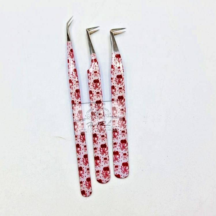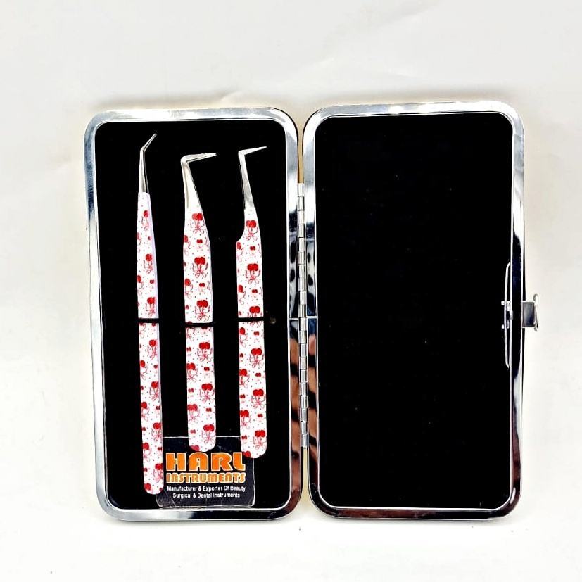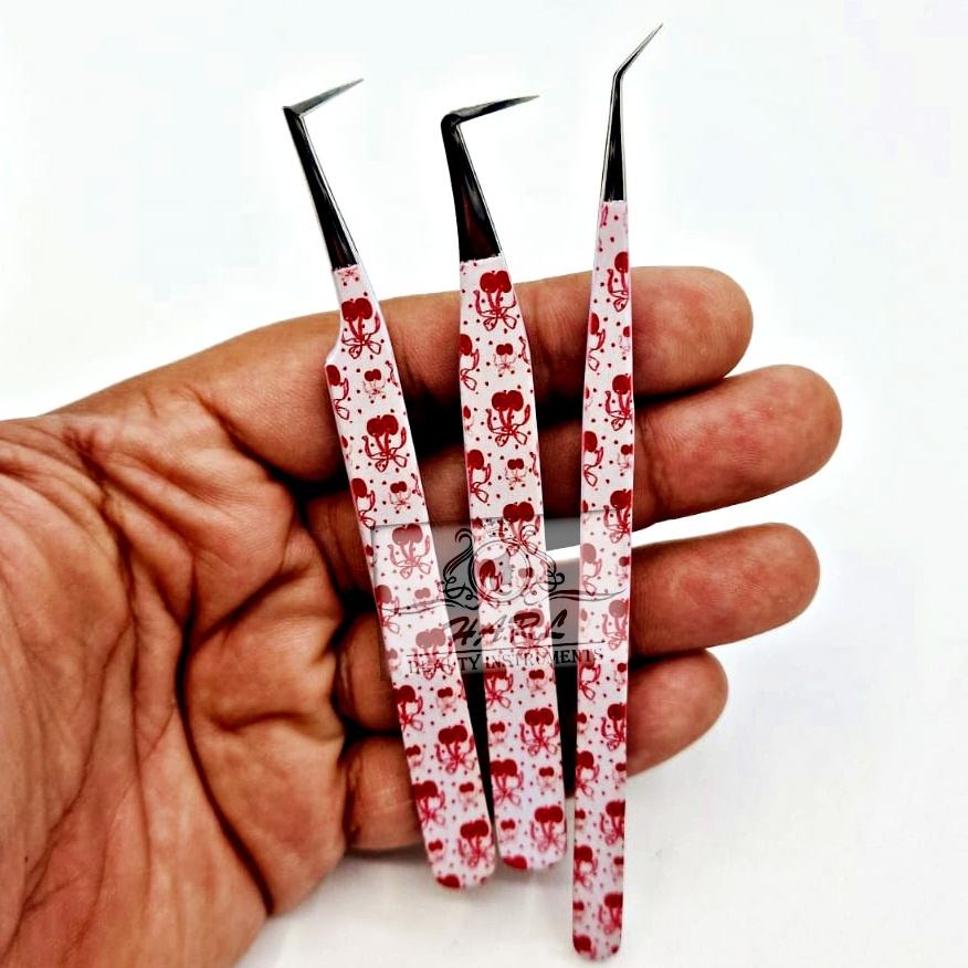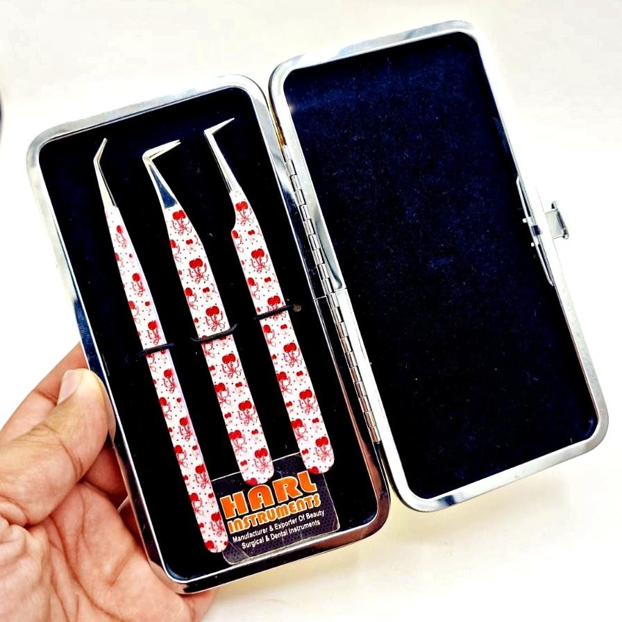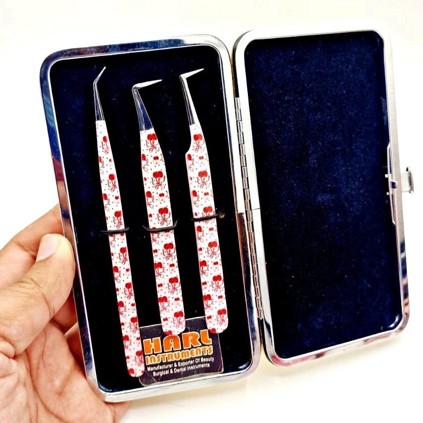 Juego de Pinzas Profesionales para Extensión de Pestañas HARL Instruments, Diseño de Lazo de Cereza, Acero Inoxidable, Precisión y Durabilidad