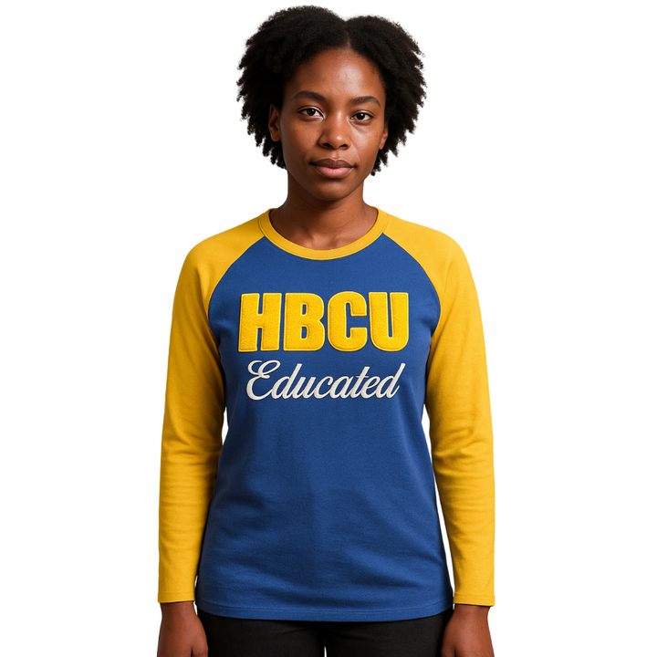 Camiseta de Manga Larga Raglán Azul con el Logotipo de la Hermandad Griega SGRho, Fabricada con Algodón Chenille, para Estudiantes de HBCU