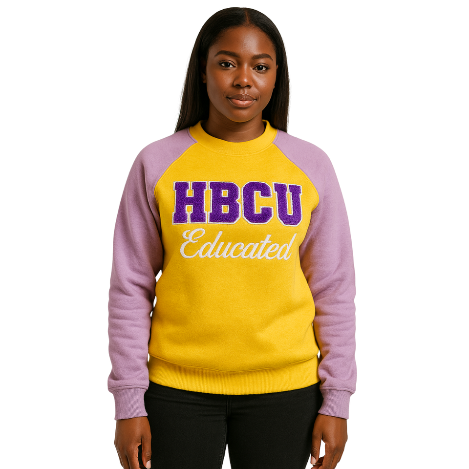 Sudadera con Mangas Raglán Doradas, Estilo HBCU, Bordado Chenille, Ropa de Hermandad Griega Divine Nine, Logotipo Personalizado, Sudadera de Moda
