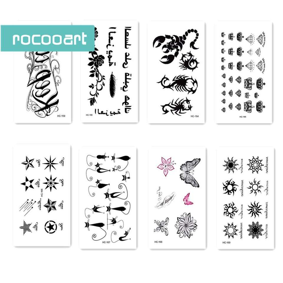 HC mezclado 16 hojas clásico diseños del tatuaje negro tatuaje temporal tatuajes coño escorpión chica con diseño de alas para hombre
