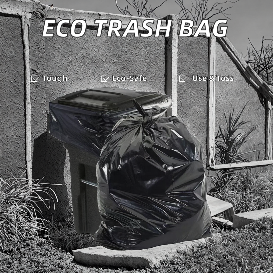 Bolsa de Basura Grande de Plástico PE Ecológica HC PACK con Fuelle Lateral, Negra, para Reciclaje Doméstico, Duradera, con Sellado Térmico e Impresión por Grabado
