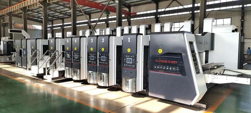 HD 5 + 1 Impresora de alta definición Slotter Troqueladora Dr Blade Box Flexo Tinta Impresión Secador Barniz Troqueladora Máquina