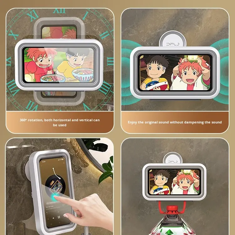 Soporte de Teléfono Móvil Giratorio Ajustable HD con Ventosa Impermeable de ABS para Baño