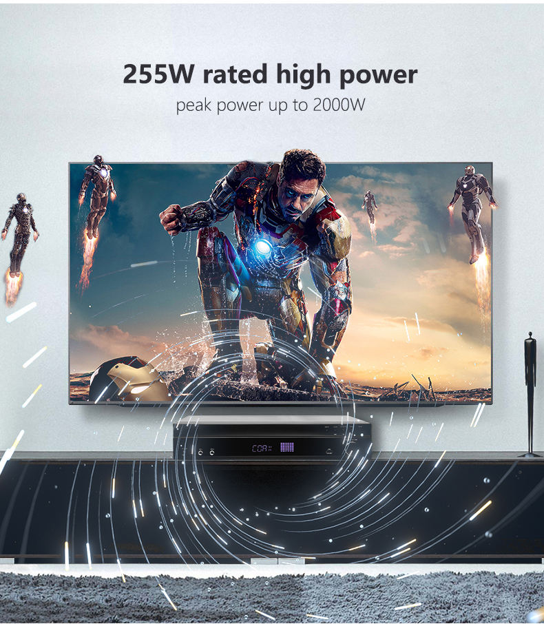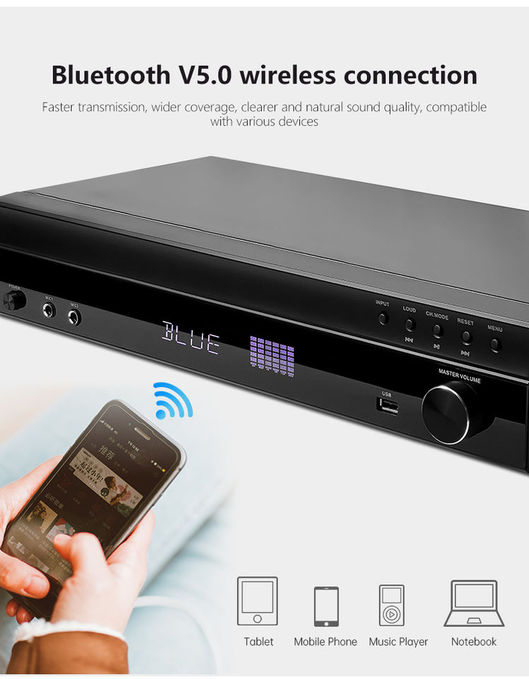 Entrada:BT5.0/HD ARC/DAC/USB/AUX/Óptico/Coaxial/FM/CD/2 MIC