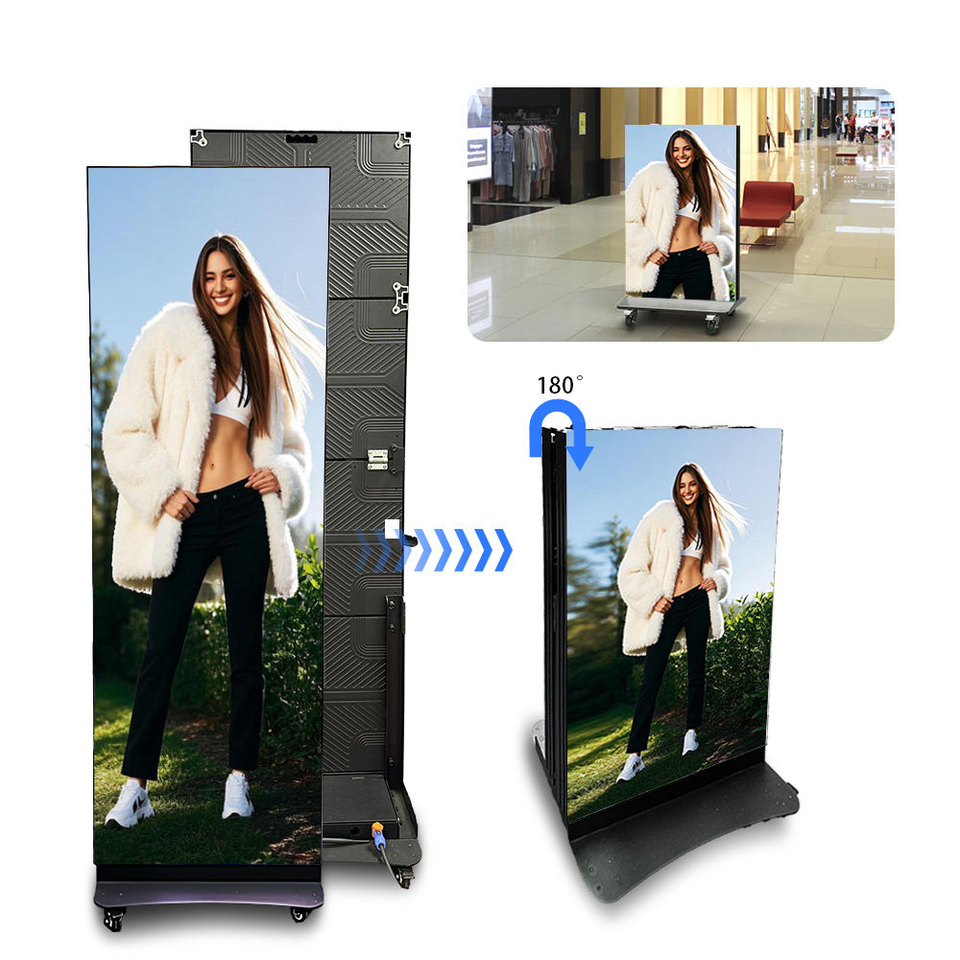 Pantalla LED comercial HD, pantalla de póster plegable de pared publicitaria, señalización Digital Led de pie