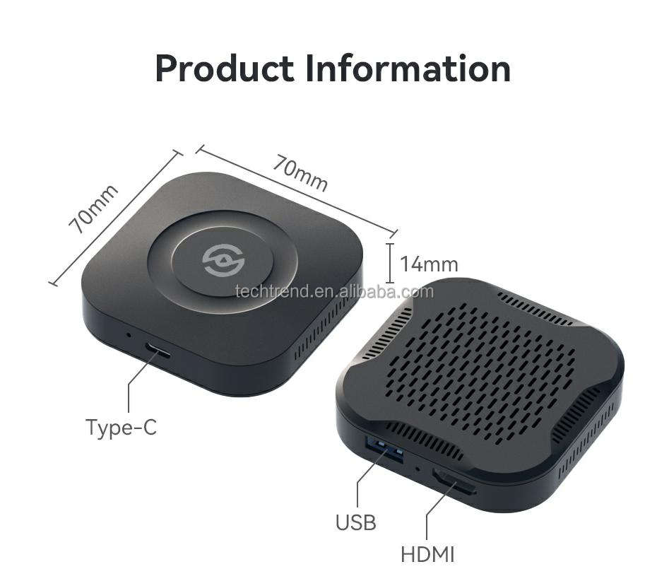 Detalles del embalaje:Caja de regalo para caja HDMI CarPlay TV Streaming Dongle Netflix YouTube Video Streaming adaptador Waze navegación Spotify música BT Interfaz de teléfono
