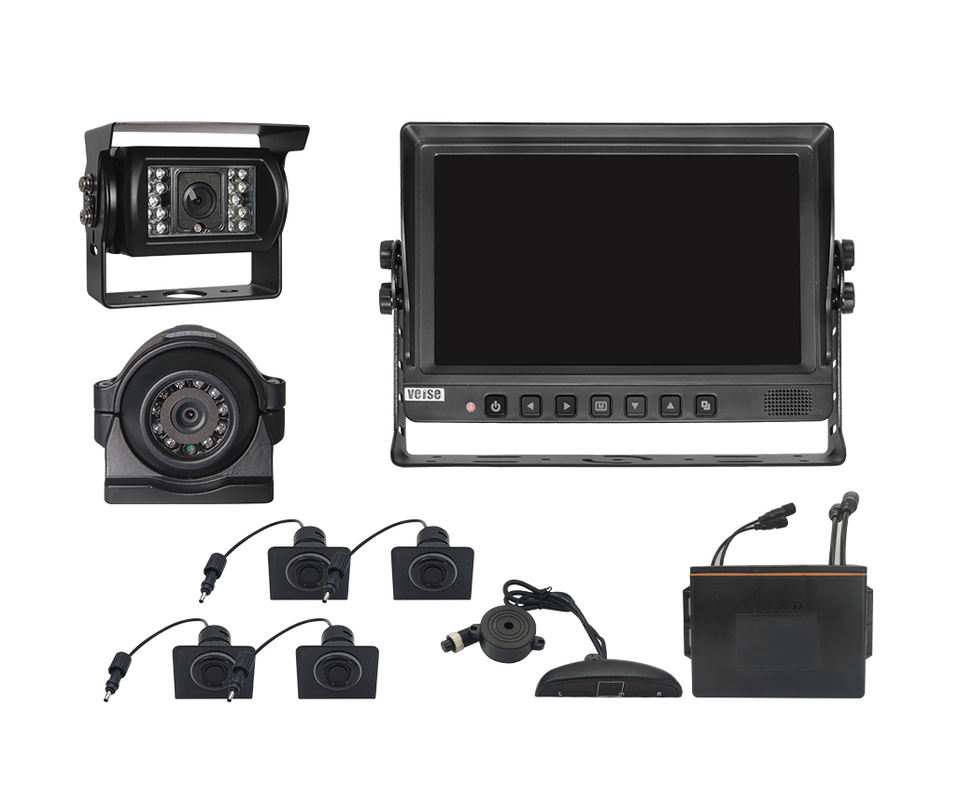 Monitor HD y Cámara Impermeable IP69K con 4 Sondas, Cámara de Reversa para Autobús, Caravana, Automóvil, Camión, Sensor de Aparcamiento