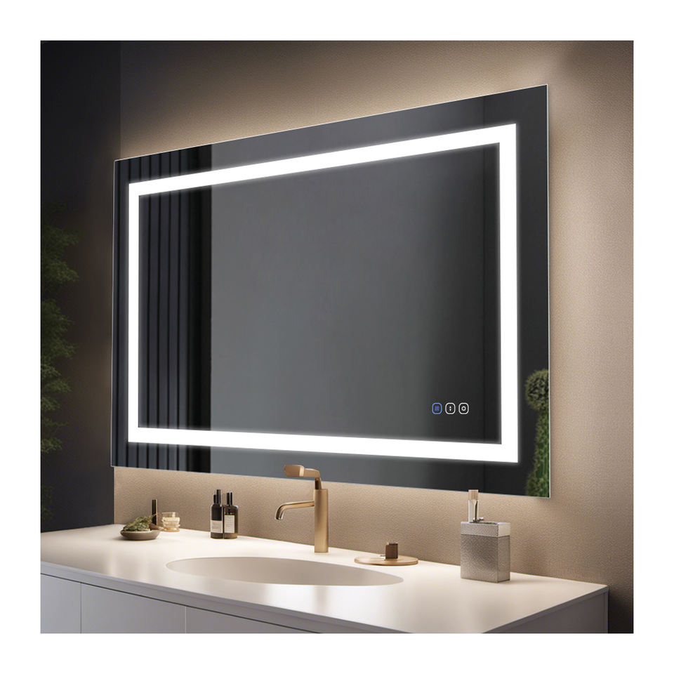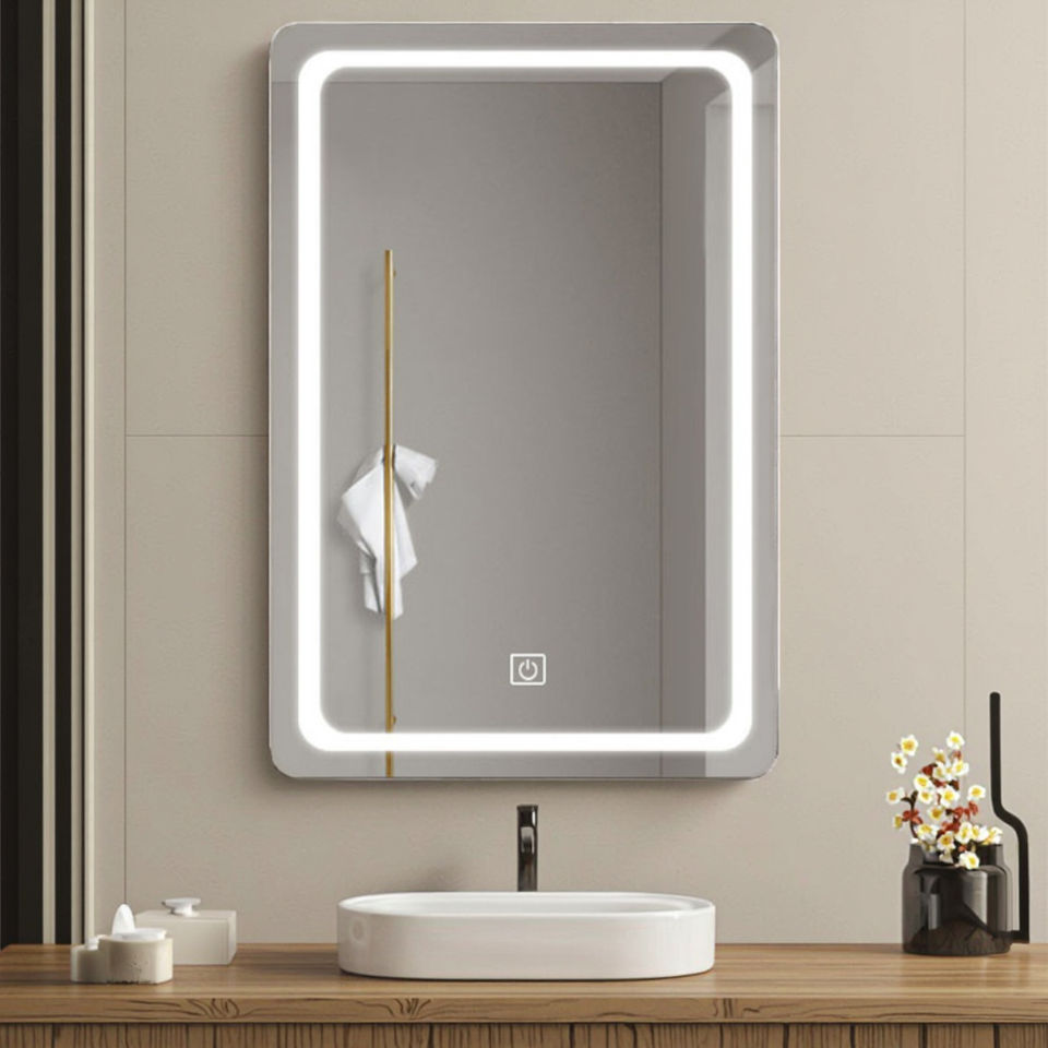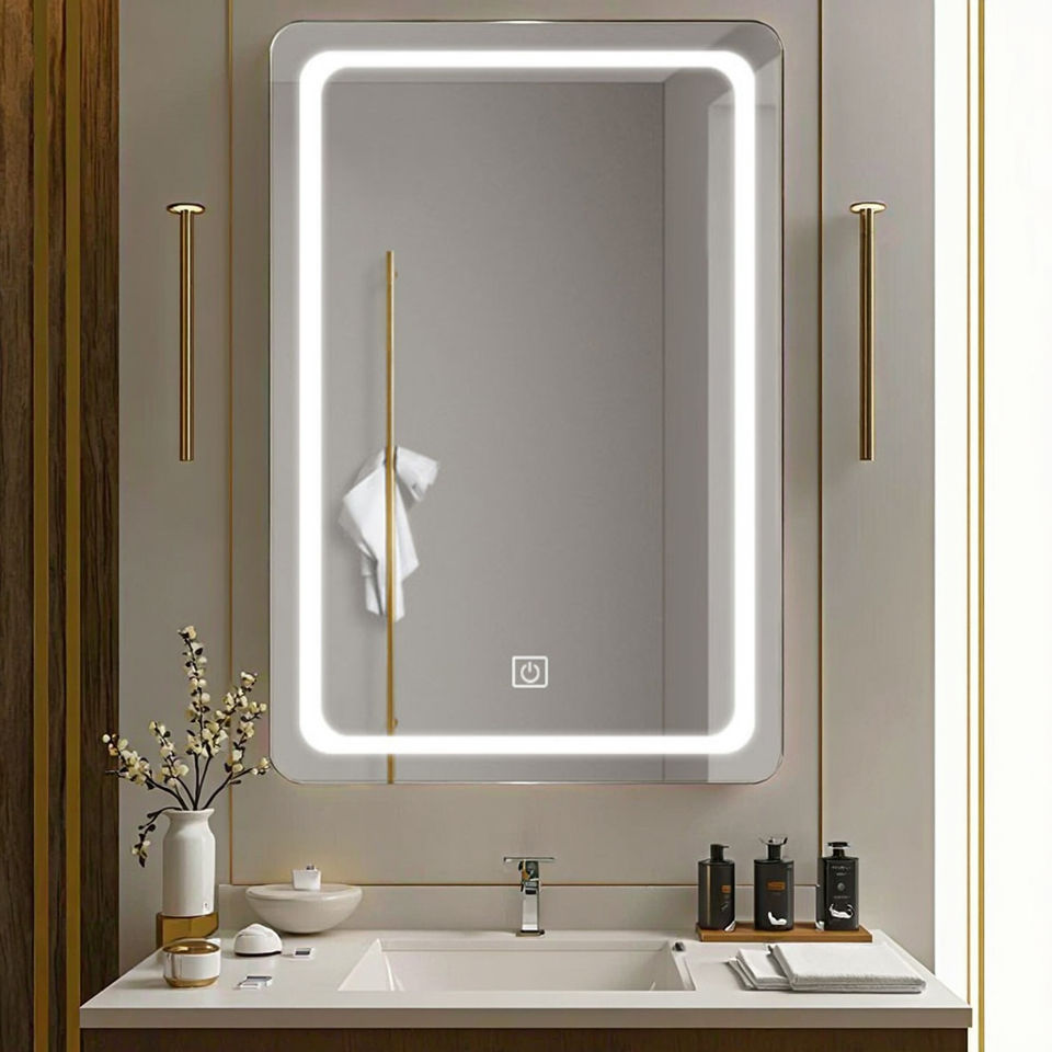 Espejo de Vanidad LED con Esquinas Redondeadas HD, Control Táctil, Antivaho, Espejo de Baño Montado en la Pared para Hogar y Hotel, Venta al por Mayor, Personalizado
