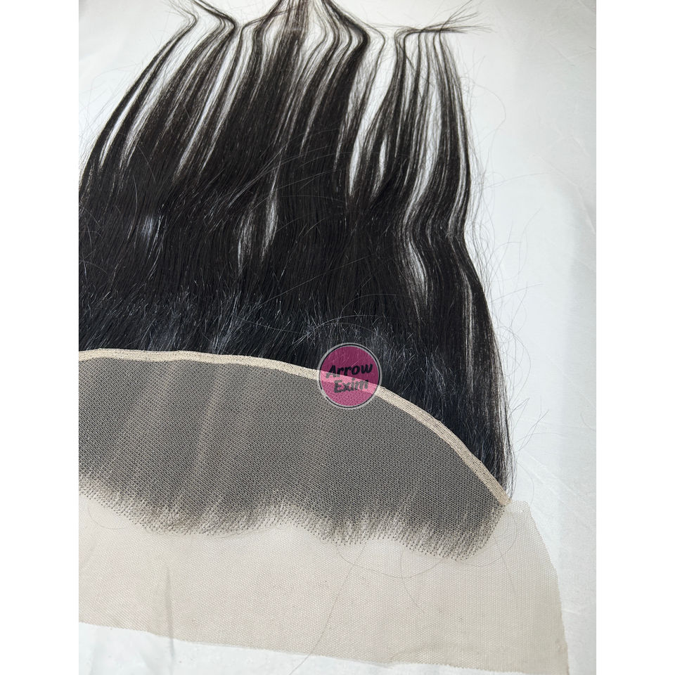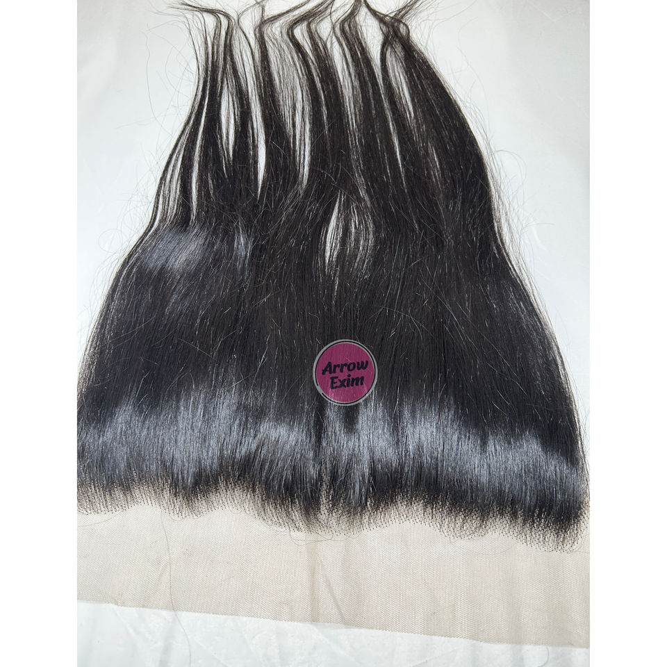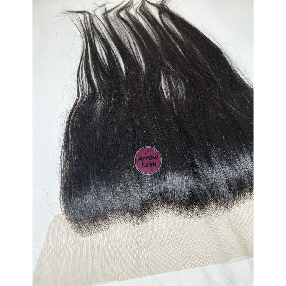 Cabello Indio Remy Virgen Sin Procesar con Frente de Encaje Transparente, Liso Natural, Suave y Brillante, 150% de Densidad, Doble Capa