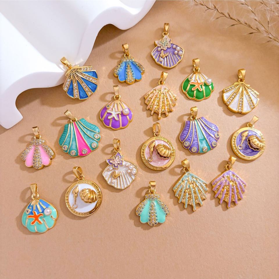 HD548 Summer Ocean Series Shell Theme Charms 18K Gold Plated Brass Enamel Zircon Seashell Charms for DIY Jewelry Wholesale