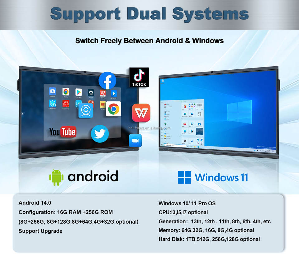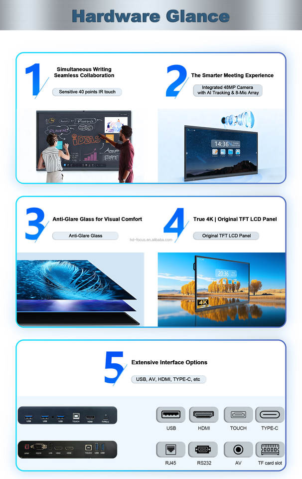 HDFocus ODM pantalla interactiva 4K Android OPS de 65 pulgadas - pizarra inteligente, monitor táctil de 75 pulgadas - pizarra interactiva