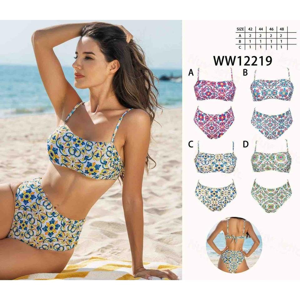 Conjunto de Bikini HDJ Tallas Grandes, Control de Abdomen, Cintura Alta, Estampado Floral, Traje de Baño de Dos Piezas, Ropa de Playa para Mujer, Tallas 42, 44, 46, 48