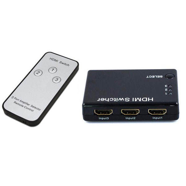 Conmutador HDMI 3 a 1 con control remoto para selección de múltiples dispositivos