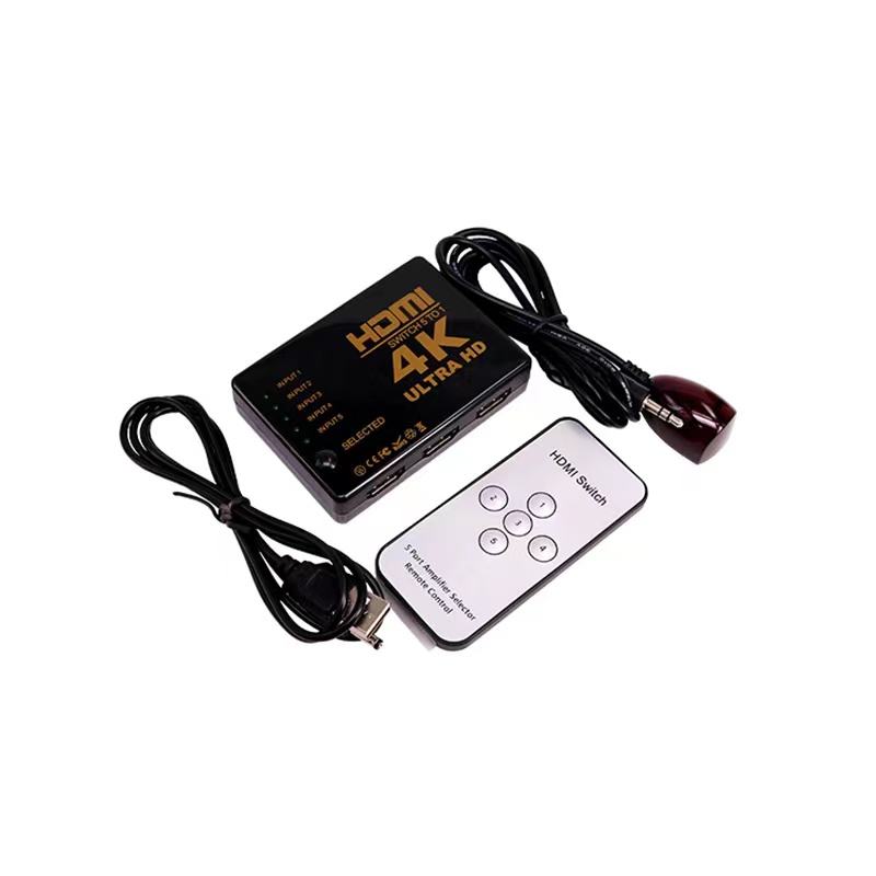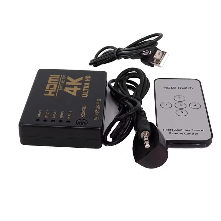 Interruptor HDMI 5 en 1 salida HDMI Splitter 5x1 con control remoto IR compatible con 3D 4K HD1080P HDMI Switcher para PS4 Xbox Blu-Ray