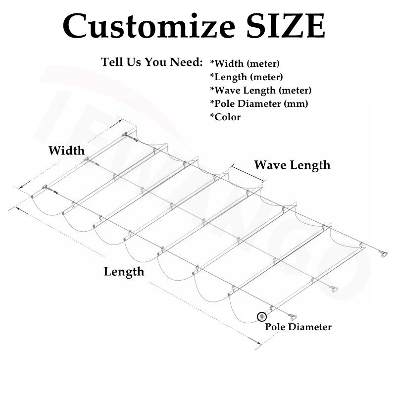 Red de sombrilla telescópica HDPE con accesorios de instalación Toldos Gazebo Sistema de polea deslizante Terraza Wave Sun Shade Sail