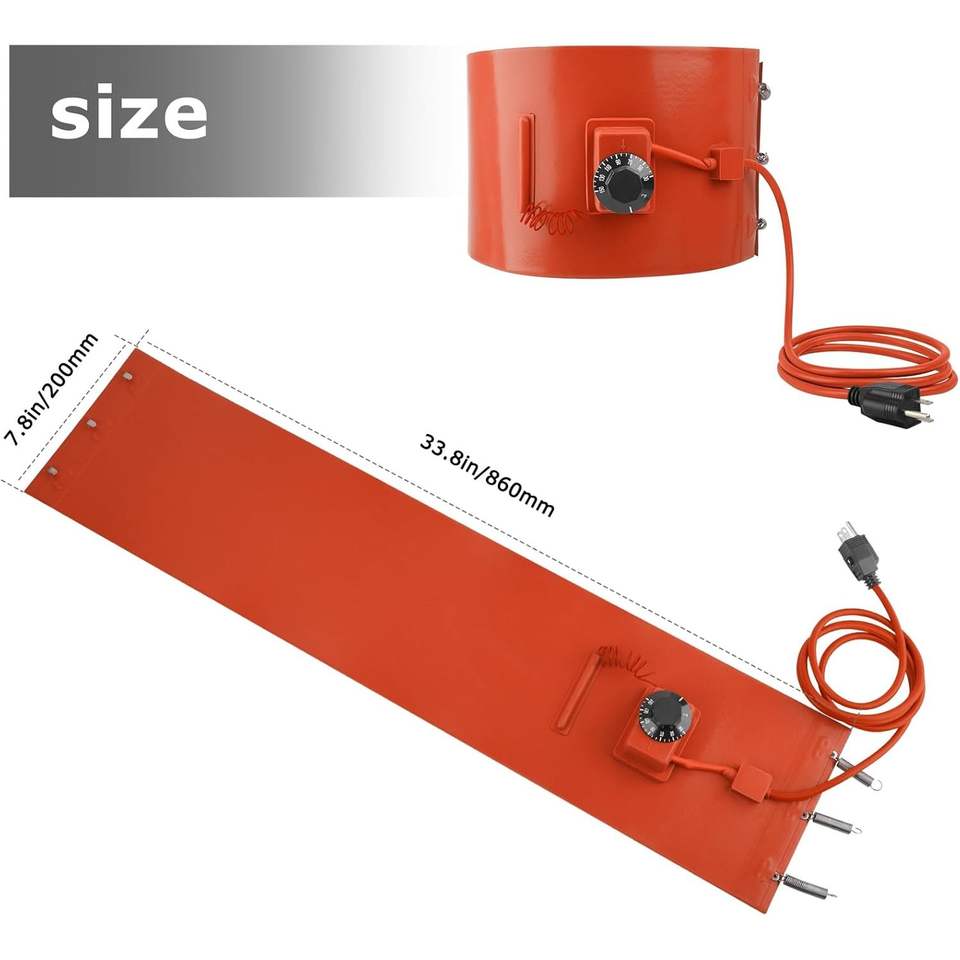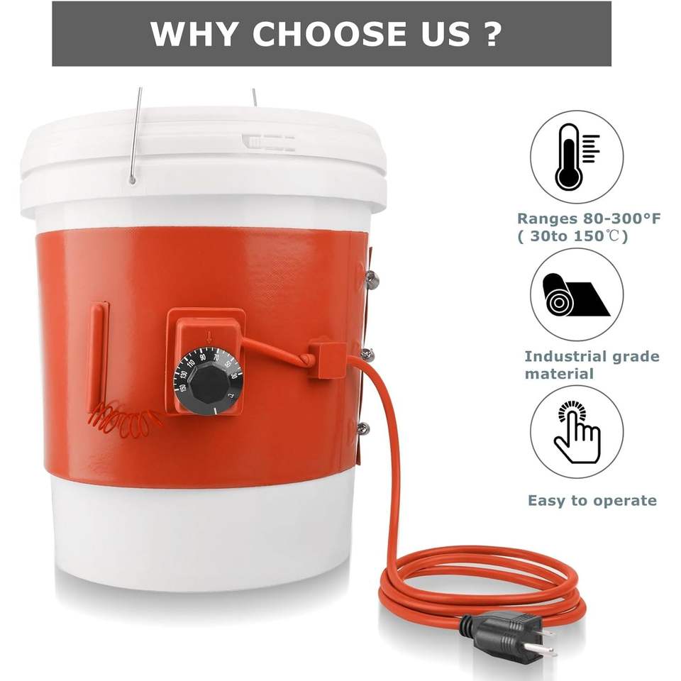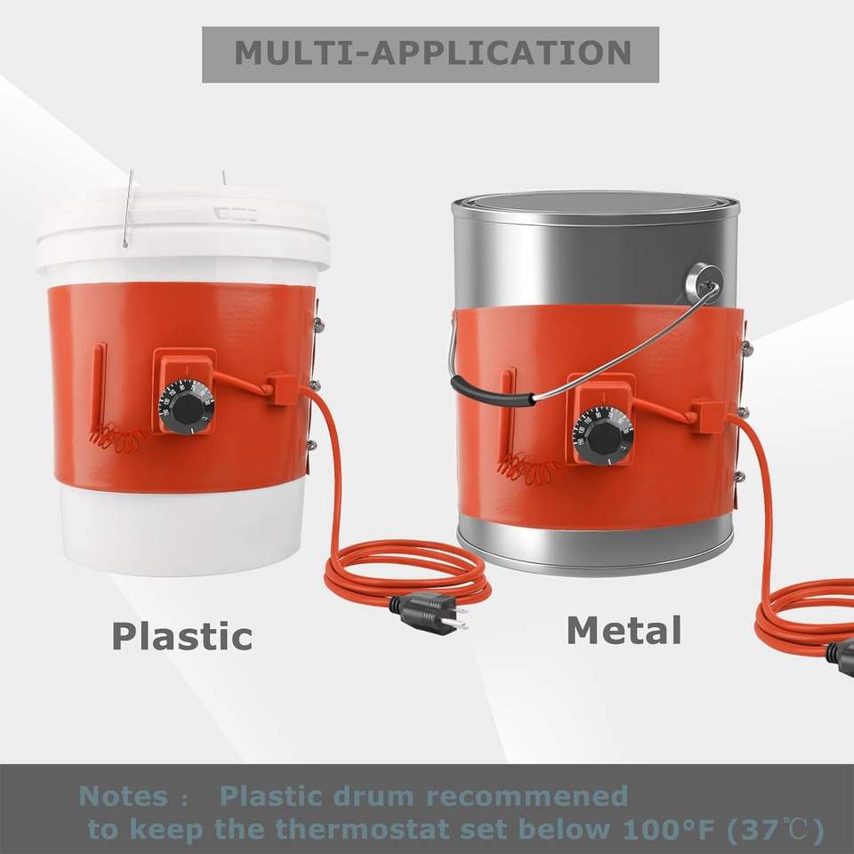 Calentador de Tambor Metálico HDYEGIOU de 5 Galones, 120V 800W, Banda Calefactora Aislada con Controlador de Temperatura de Plástico, con Opción de Alimentación de 380V 100W