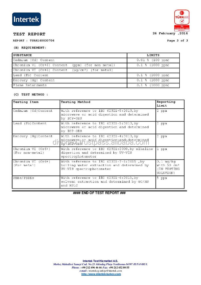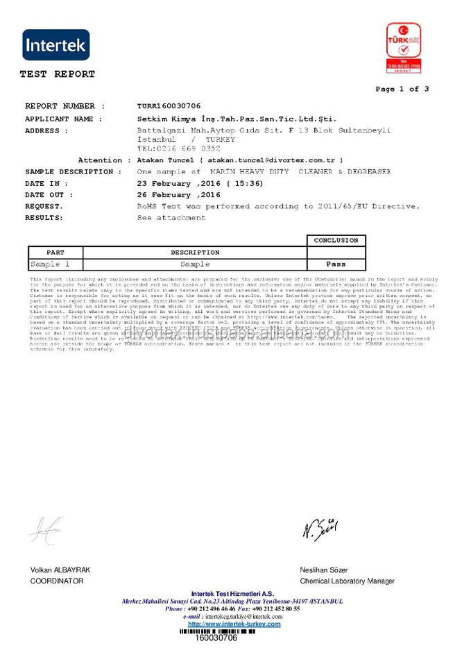Certificado:ROSH, MSDS, TDS