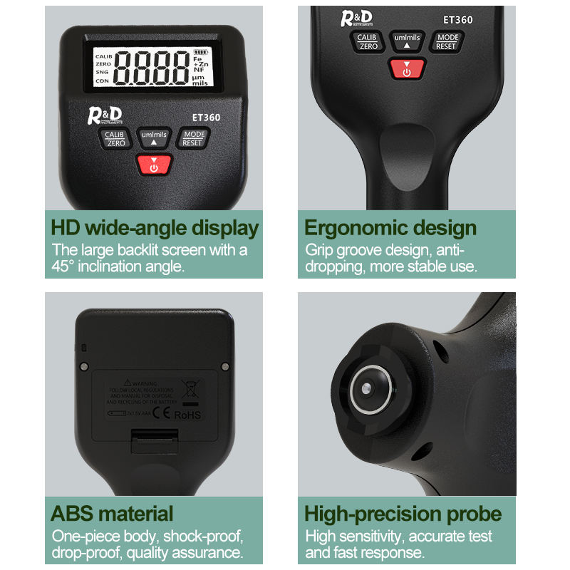 Medidor de Espesor de Pintura de Alta Precisión a Nivel de Micras HEDAO R&D ET360 para Recubrimientos de Pintura de Automóviles Fe/NFe Fe+