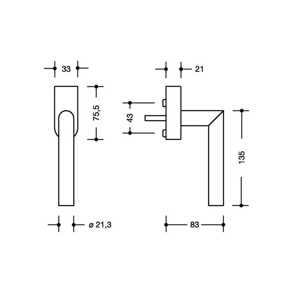 Tirador de ventana HEWI XA 35 mm