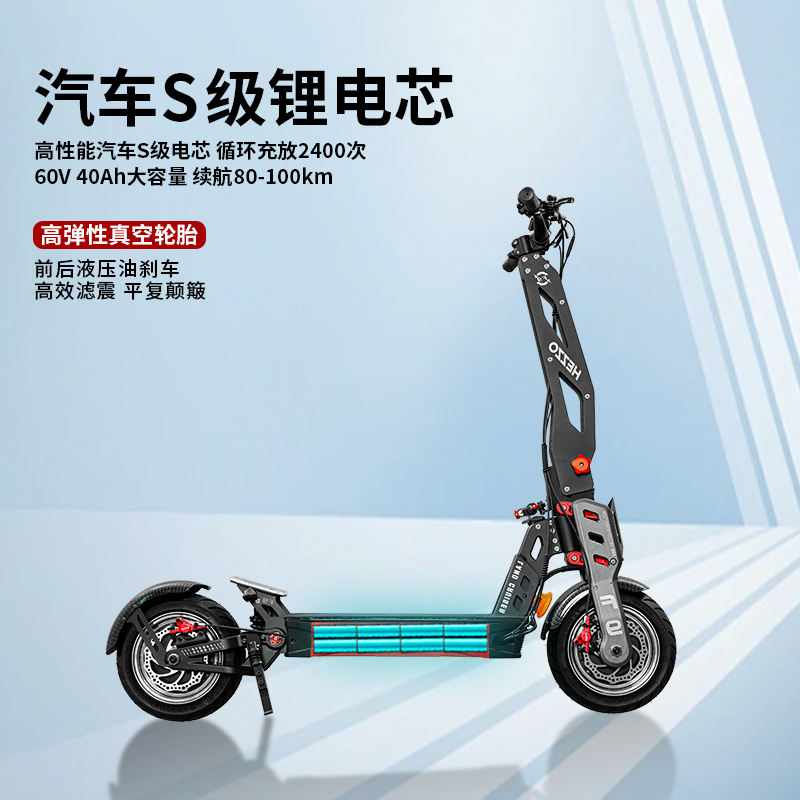 Patinete Eléctrico Plegable HEZZO F9 60V 8000W con Doble Motor | 12 pulgadas Todoterreno | 53 MPH, Alcance de 60 Millas | NFC Inteligente | Batería de 2400 Wh