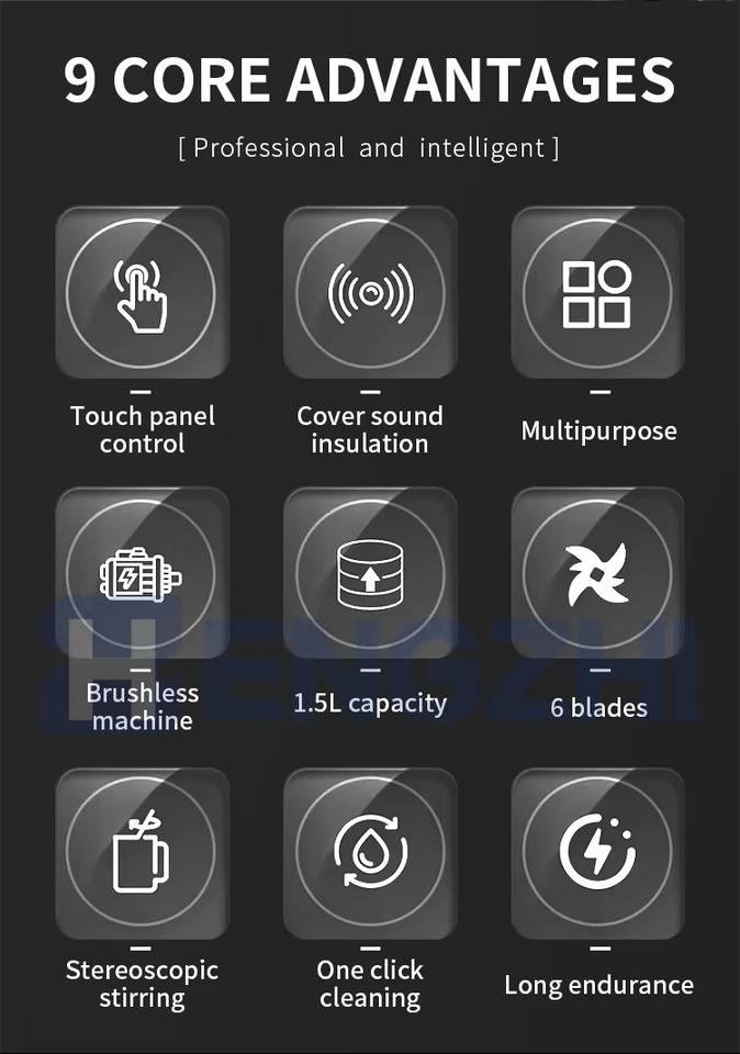 6~7 Preset Programs:tea brewing,milk frothing,creamy topping, shaking,juicke & smoothie
