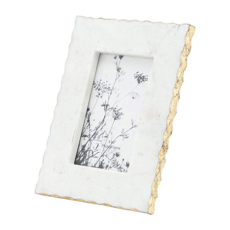 HF CRAFT Marco de madera de primera calidad Foto de mármol con revestimiento de latón acabado