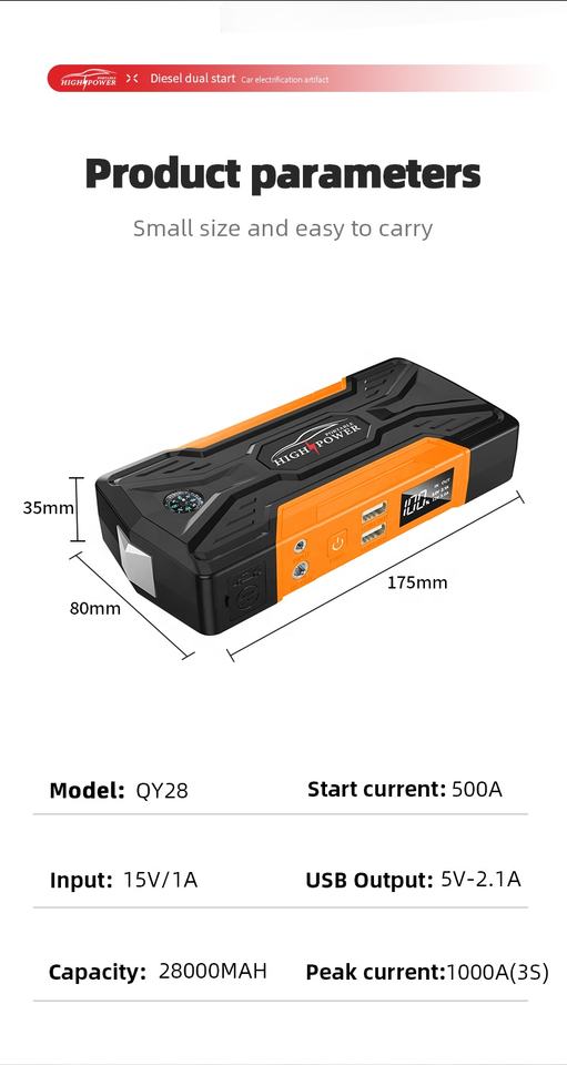 LED Luz, Chispa de prueba, Pantalla digital, Coche de pasajeros, Motocicleta, Camión, Coche 12V, Móvil, Ordenador portátil, Camping, Lingting/Strobe/SOS, Brújula, 6L gas y motores diesel 3LFunción