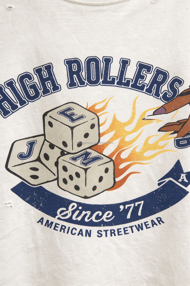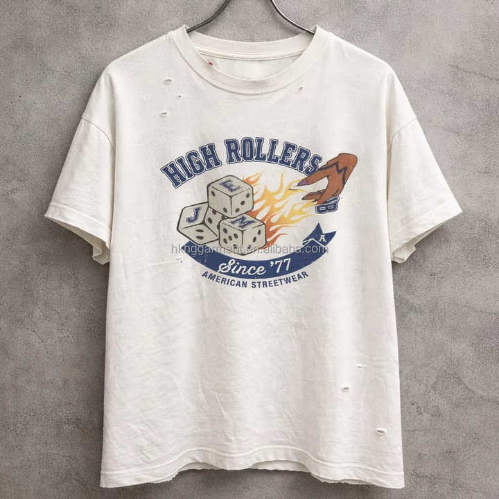 Camiseta de Algodón 100% con Logotipo Personalizado de Fábrica HG, Manga Corta para Hombre, Estilo Vintage Lavado, Corte Cuadrado, Diseño Gráfico Desgastado