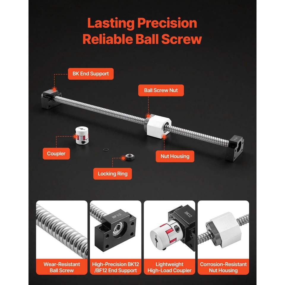 Kit de Guías Lineales HGR20, 2 Piezas de 600 mm con Tornillo de Bolas y 4 Bloques Deslizantes BF12/BK12, Rieles Lineales de 23.62 Pulgadas