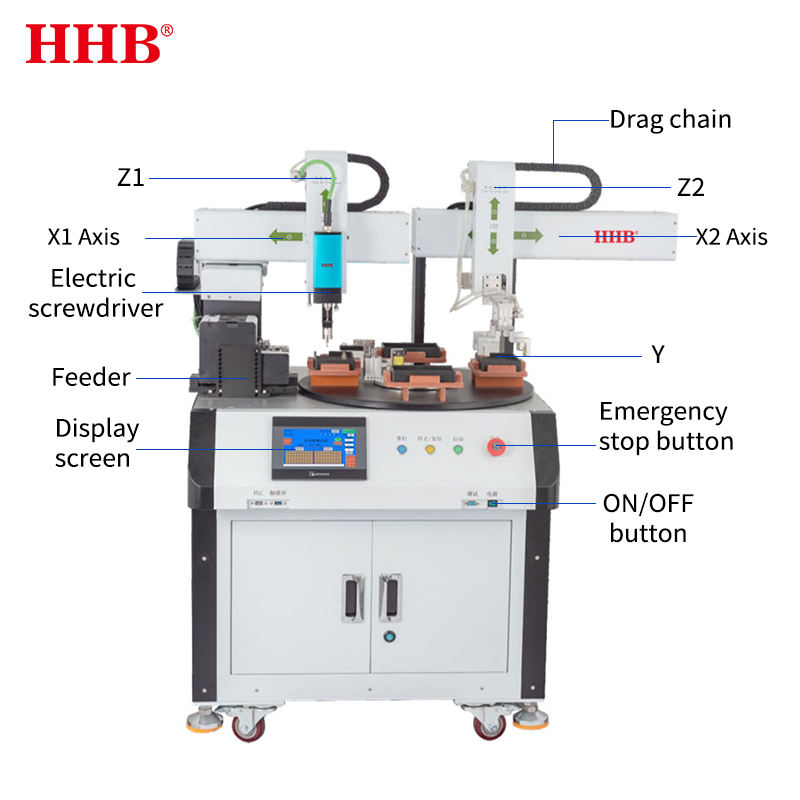 Máquina Atornilladora Rotativa Automática HHB con Manipulador de Descarga, Robot de Plataforma Giratoria de 4 Estaciones para Línea de Producción