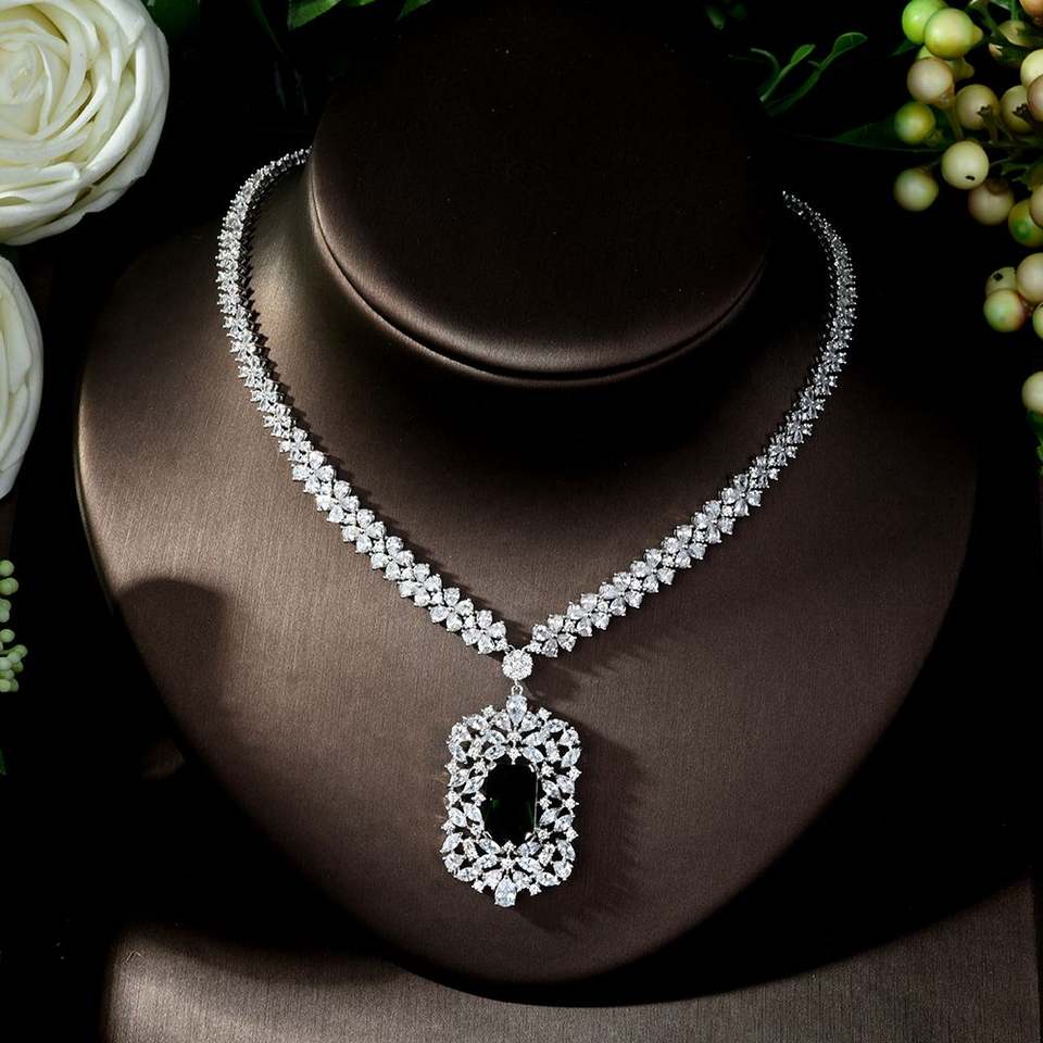 HIBRIDE, conjuntos de joyería verde AAA CZ a la moda para mujer, conjunto de collar, bisutería para mujer, accesorios para mujer, regalos de joyería de forma cuadrada
