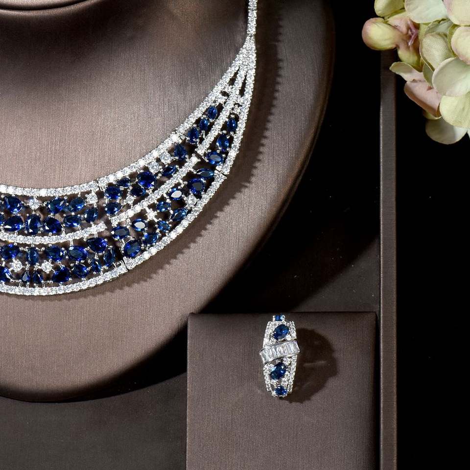 HIBRIDE lujo 2 uds azul geométrico Dubai conjuntos de joyería nupcial Stud pendiente encanto declaración CZ collar conjuntos venta al por mayor